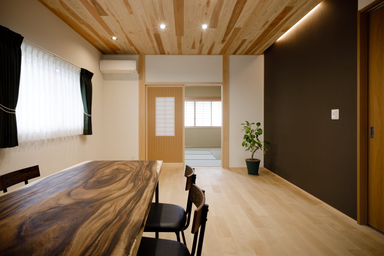 段差に腰かけてくつろぐことができる、小上がり和室。ちょっと腰掛けて、リビングにいるご家族とおしゃべりをするのも◎